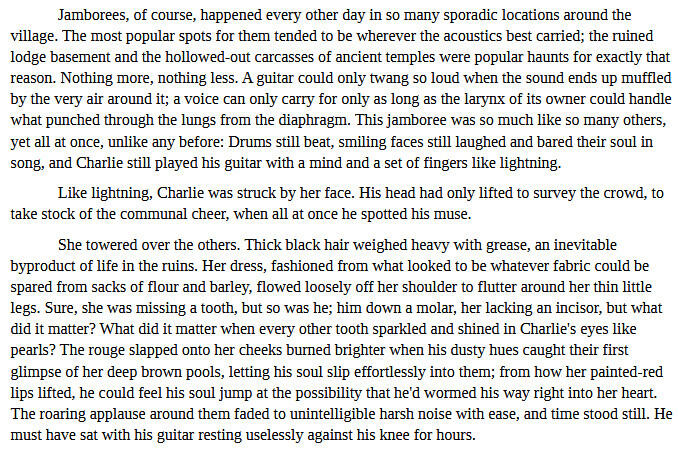 We write fan fiction, original fiction, and essays, and we consider all these to be of equal merit.